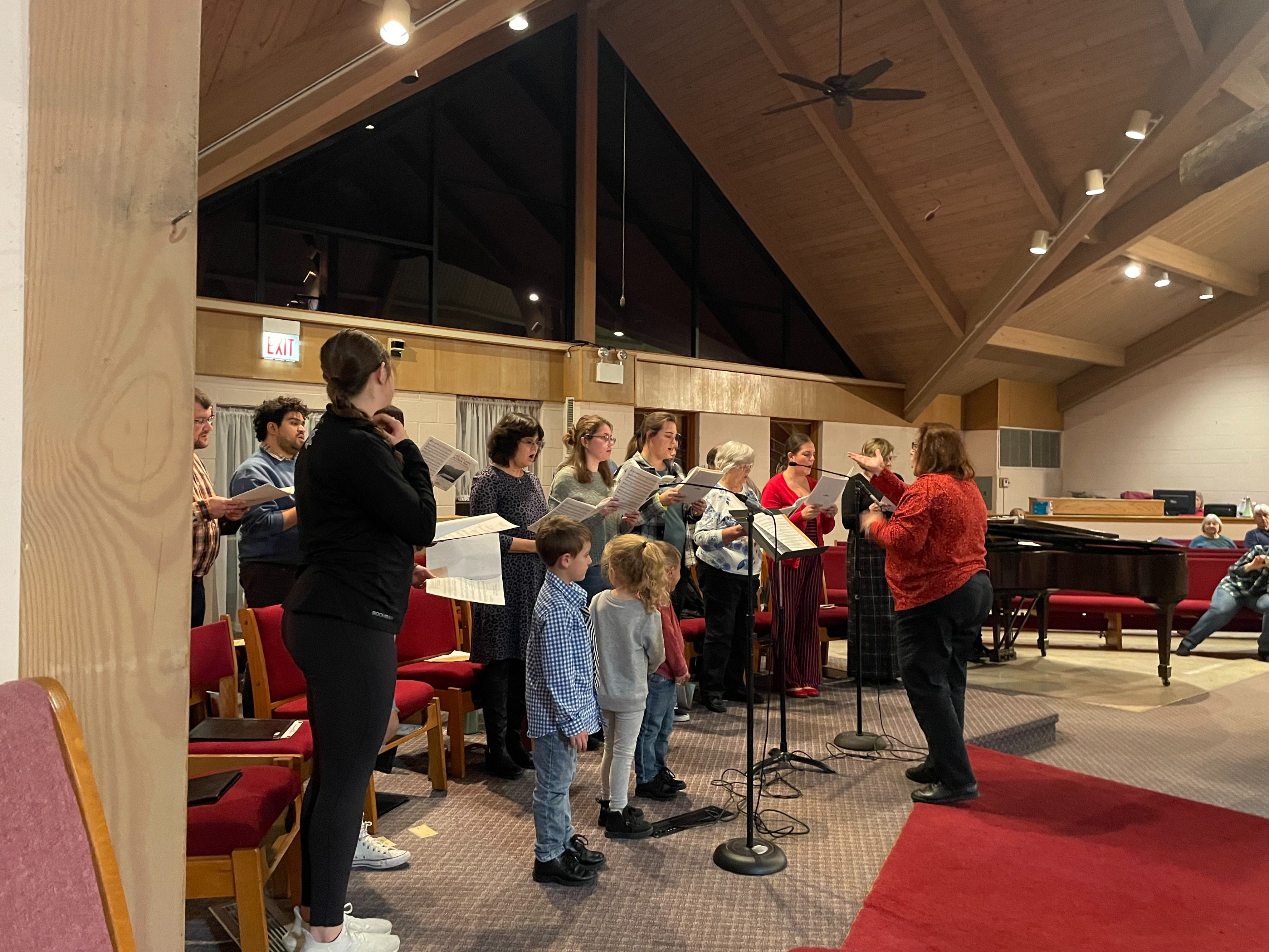 High school students and adults sing a wide variety of music in Sunday worship. Rehearsals are Wednesday evenings from 7:15 to 8:15pm